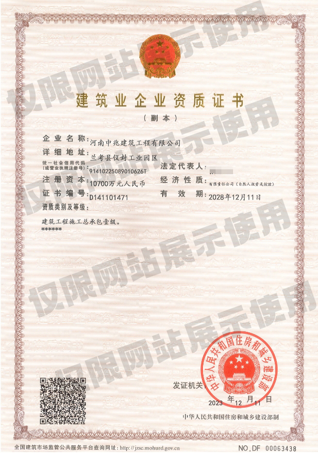 河南中兆建筑工程有限公司成立于2013年,公司注冊資本10700萬元,凈資產總額近1.9億元。公司目前具有“建筑工程、市政公用工程、鋼結構工程、建筑機電安裝工程、建筑裝修裝飾工程、地基與基礎工程、消防設施工程、壓力管道”等17個資質。現有從業人員2150人,具有中高級各類專業技術職稱管理人員達120人,壹級、貳級建造師約90余人;主要施工設備300多臺(套)。通過了ISO9001質量管理體系認證、職業健康安全管理體系認證、環(huán)境管理體系認證,并多次獲得省級“AAA”信用企業、“重合同守信用”、“先進建筑企業...